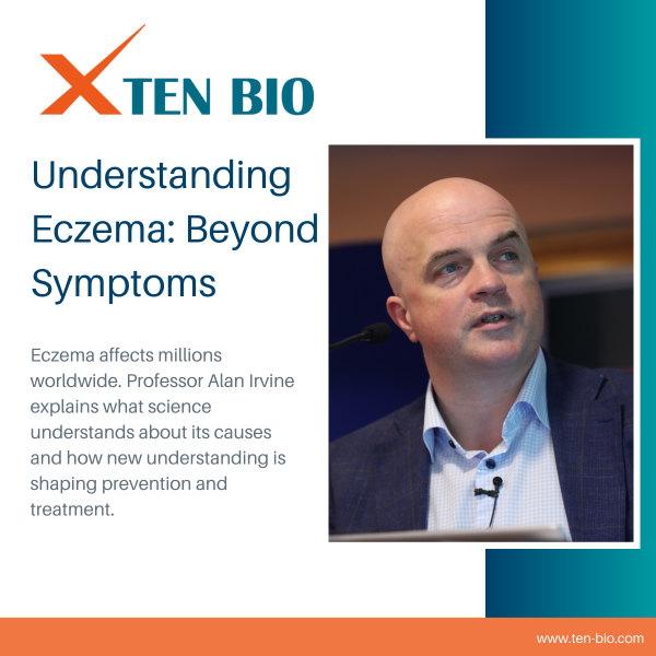 Eczema (atopic dermatitis) affects millions worldwide, yet many of its underlying mechanisms are still being uncovered. In this article, Professor Alan Irvine outlines what science understands about the condition’s causes — from the role of the skin barrier and immune pathways to the influence of the microbiome and environment — and explains how these insights are shaping innovative approaches to prevention and treatment.